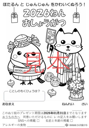 お子様に描いていただいたぬり絵はご希望によりSNSに掲載します。