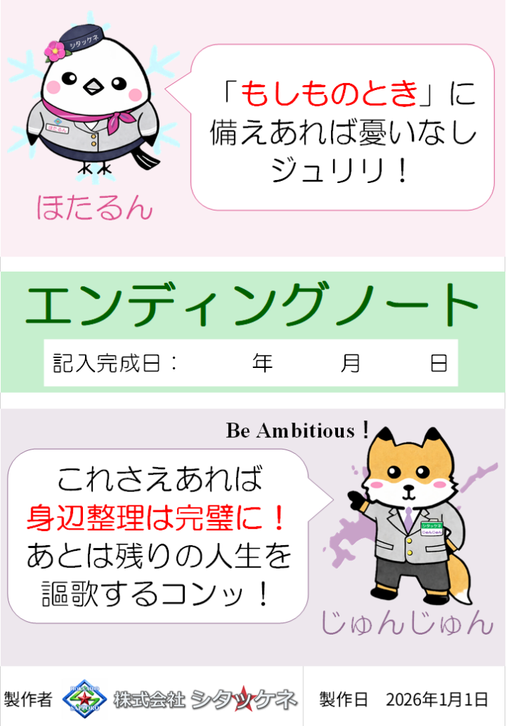 シタッケネ製作のエンディングノートを用いて、ご家族などへ伝えておきたい大切なことを書面に残します。